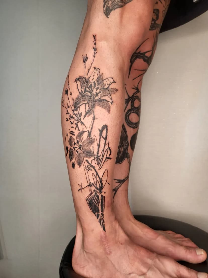 A. 안녕하세요. 21년 8월부터 제주도의 덤불 스튜디오에서 작업하고 있는 타투이스트 소년입니다.