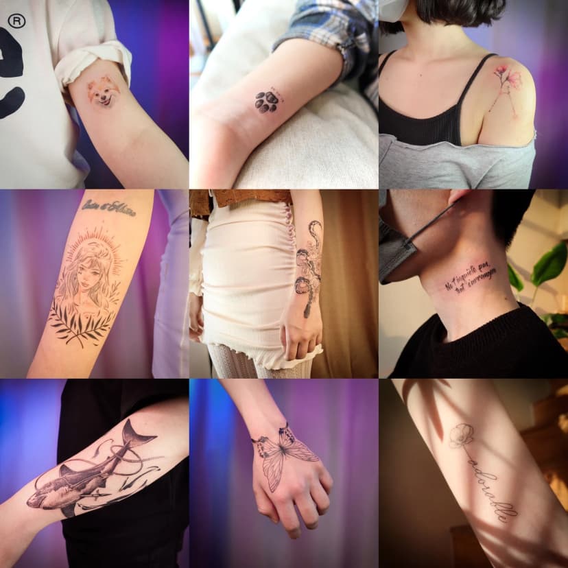 예전에는 큼지막한 타투로 자신을 표현했다면, 요즘에는 미니타투와 같이 작은 타투를 여러 개 받으시는 고객분들이 많이 생기고 있습니다. 주로 일러스트, 미니타투, 레터링을 많이 하고 있고, 손님 분들도 많이 찾으셔서 가장 자신있는 장르로 뽑았습니다. 손님 분들 모두 다른 곳과 차별점이 있다며 만족해 하시는데, 다른 타투이스트들과 차별화된 점은..
