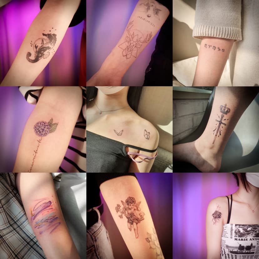 섬세한 터치감이라고 생각합니다. 얇은 선으로 섬세하게 표현하는 걸 좋아하고, 잘해서 손님분들이 작고 얇게, 많이들 작업 받으러 오시는 거 같습니다. 여성분들은 주로 미니타투, 일러스트를 받으시고, 남성 분들은 섬세한 레터링 작업을 받으러 오시는 편인데요. 또 섬세한 일러스트 타투를 좋아하는 남성 분들도 많아져서 즐겁게 작업하고 있습니다.